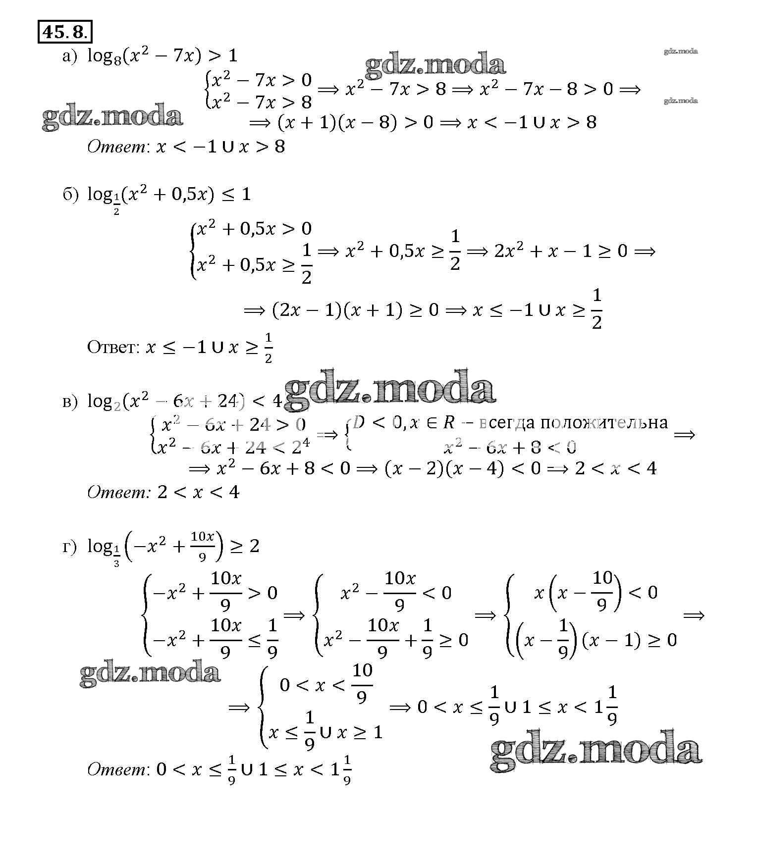 ОТВЕТ на задание № 45. 8 Задачник по Алгебре 10-11 класс Мордкович Базовый уровень