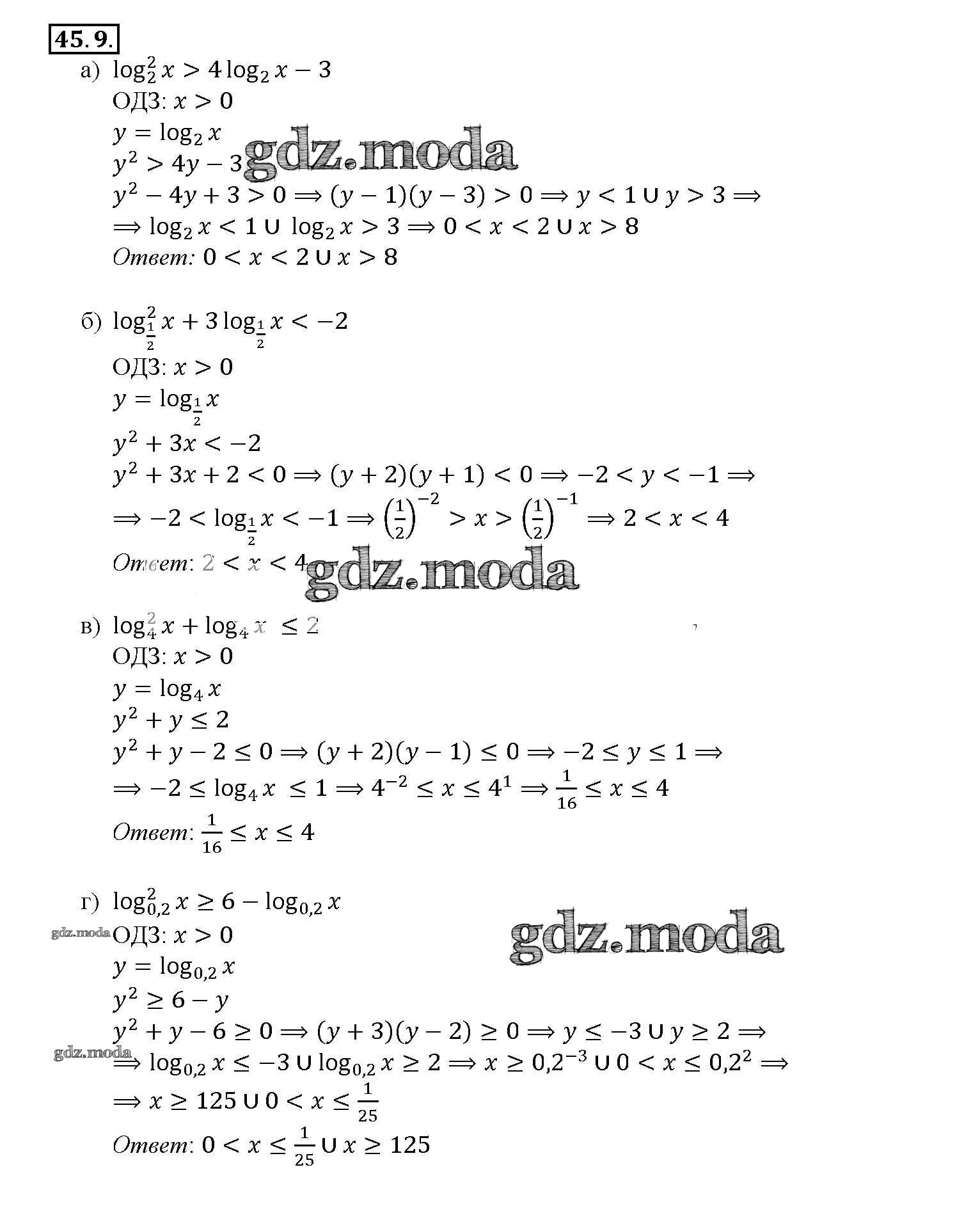 ГДЗ решение к заданию № 45. 9 Алгебра 10-11 класс Задачник Базовый уровень 2 часть Мордкович А.Г. Мнемозина 2015 Часть 2 Базовый уровень ФГОС бесплатно на гдз.мода!