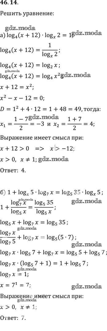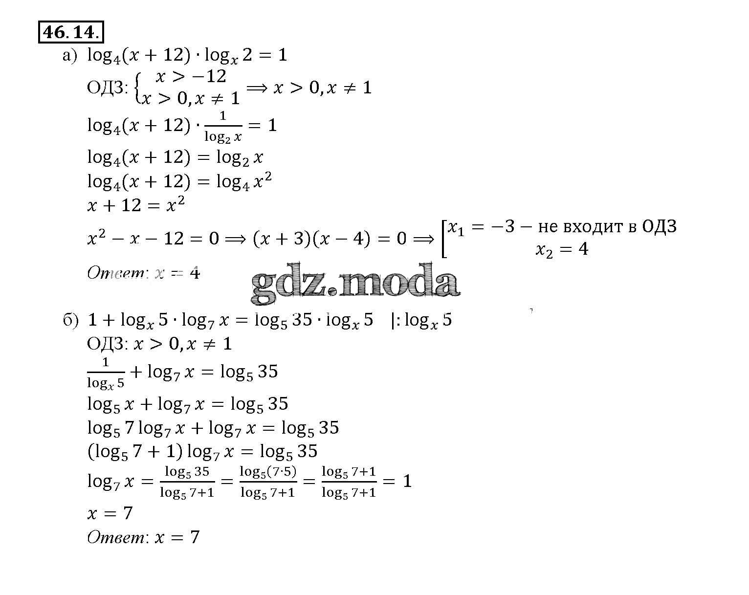 ОТВЕТ на задание № 46. 14 Задачник по Алгебре 10-11 класс Мордкович Базовый уровень