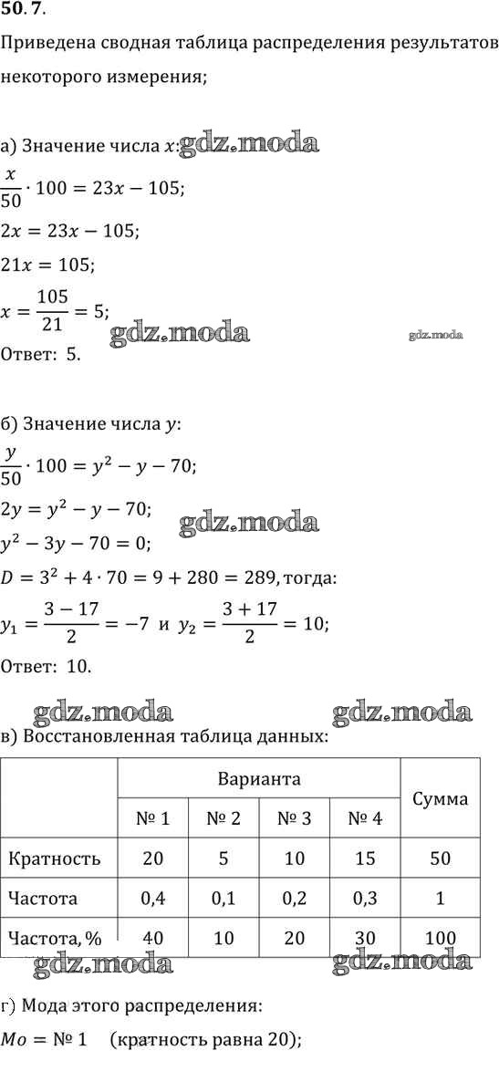 ОТВЕТ на задание № 50. 7 Задачник по Алгебре 10-11 класс Мордкович Базовый уровень