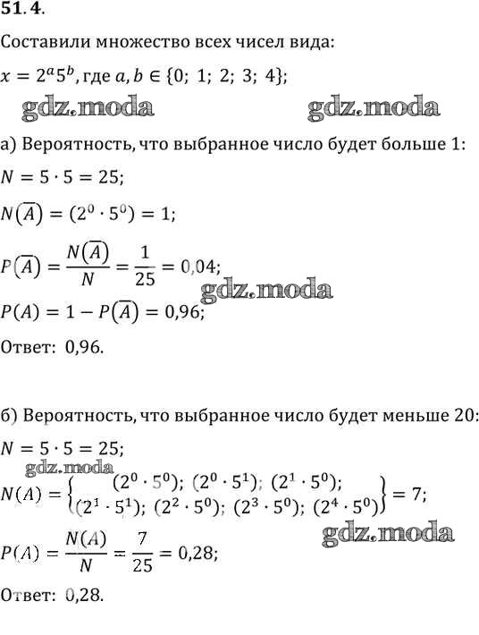 ОТВЕТ на задание № 51. 4 Задачник по Алгебре 10-11 класс Мордкович Базовый уровень