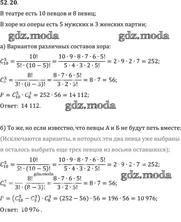 ГДЗ решение к заданию № 52. 20 Алгебра 10-11 класс Задачник Базовый уровень 2 часть Мордкович А.Г. Мнемозина 2015 Часть 2 Базовый уровень ФГОС бесплатно на гдз.мода!