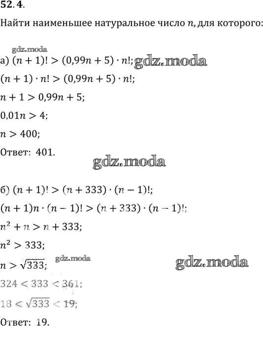 ОТВЕТ на задание № 52. 4 Задачник по Алгебре 10-11 класс Мордкович Базовый уровень