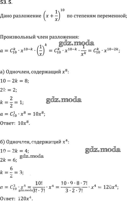 ГДЗ решение к заданию № 53. 5 Алгебра 10-11 класс Задачник Базовый уровень 2 часть Мордкович А.Г. Мнемозина 2015 Часть 2 Базовый уровень ФГОС бесплатно на гдз.мода!