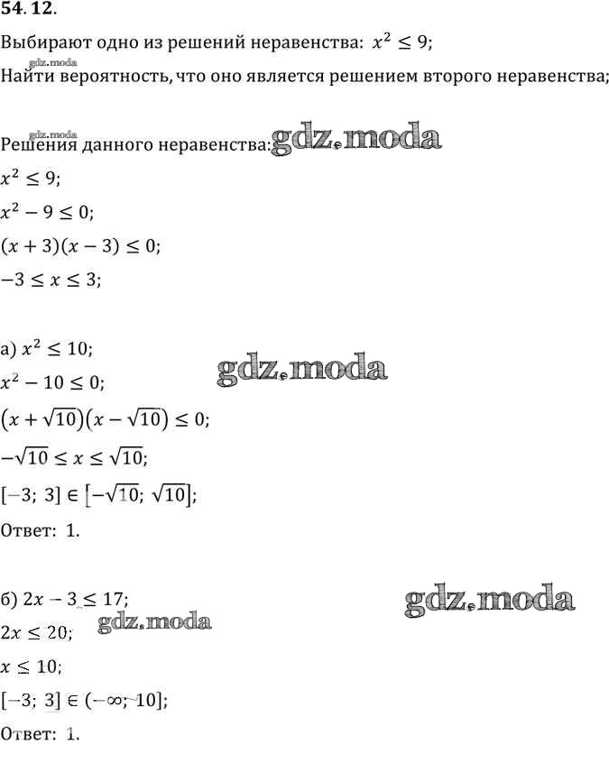 ОТВЕТ на задание № 54. 12 Задачник по Алгебре 10-11 класс Мордкович Базовый уровень