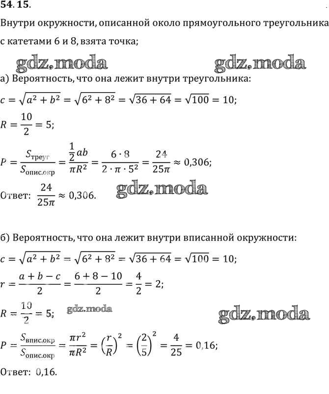 ОТВЕТ на задание № 54. 15 Задачник по Алгебре 10-11 класс Мордкович Базовый уровень