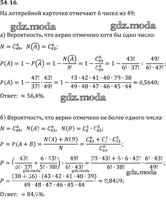 ОТВЕТ на задание № 54. 16 Задачник по Алгебре 10-11 класс Мордкович Базовый уровень
