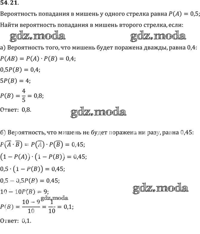 ОТВЕТ на задание № 54. 21 Задачник по Алгебре 10-11 класс Мордкович Базовый уровень
