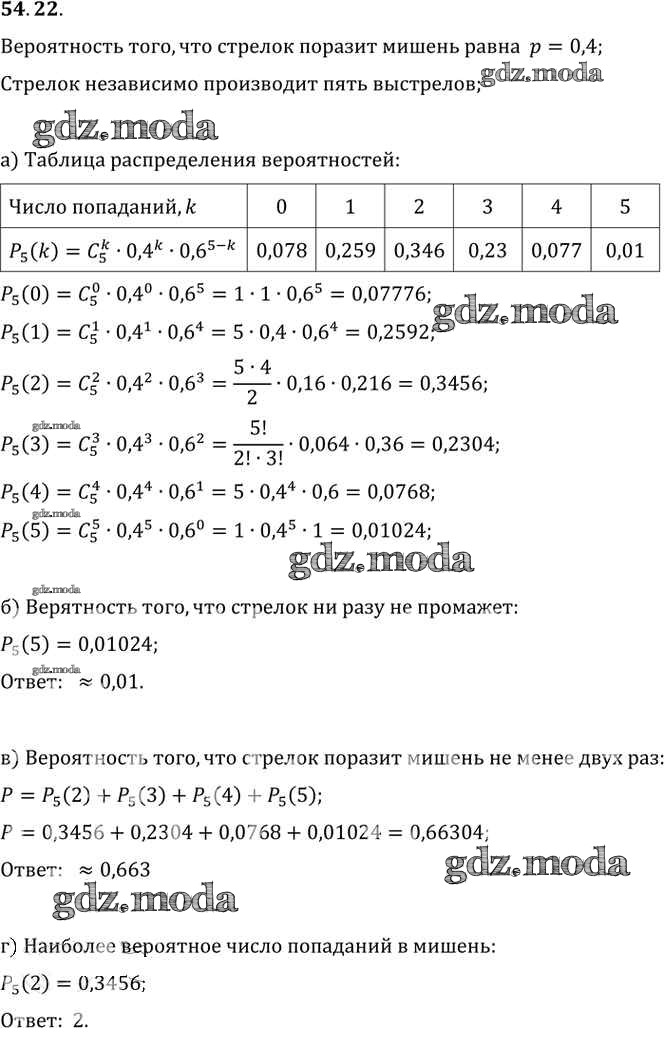 ОТВЕТ на задание № 54. 22 Задачник по Алгебре 10-11 класс Мордкович Базовый уровень