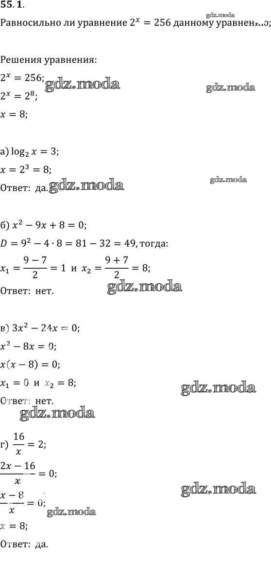 ОТВЕТ на задание № 55. 1 Задачник по Алгебре 10-11 класс Мордкович Базовый уровень