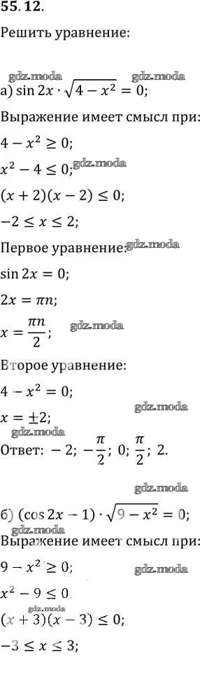 ОТВЕТ на задание № 55. 12 Задачник по Алгебре 10-11 класс Мордкович Базовый уровень