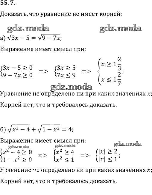 ОТВЕТ на задание № 55. 7 Задачник по Алгебре 10-11 класс Мордкович Базовый уровень