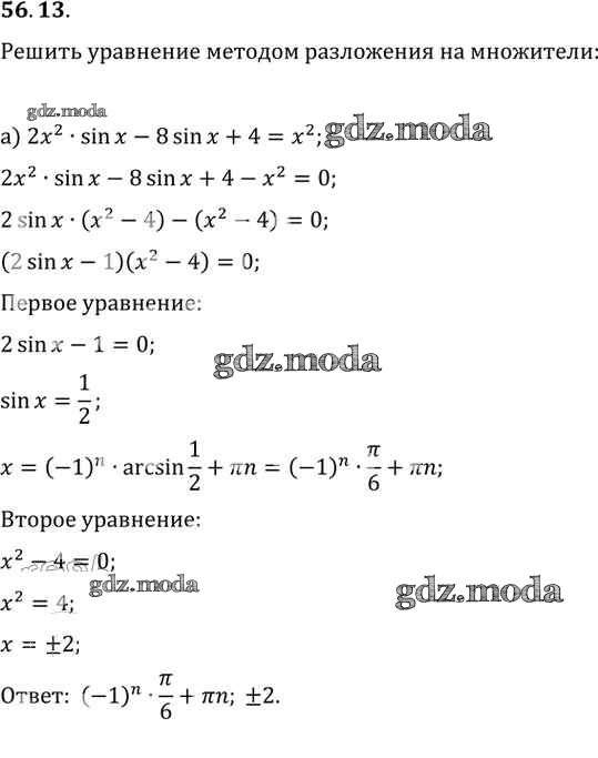 ОТВЕТ на задание № 56. 13 Задачник по Алгебре 10-11 класс Мордкович Базовый уровень