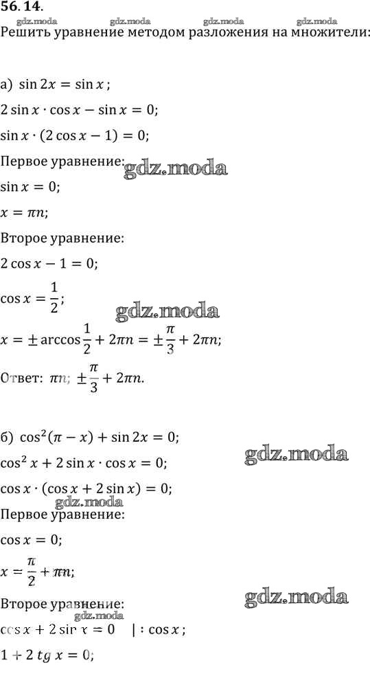 ГДЗ решение к заданию № 56. 14 Алгебра 10-11 класс Задачник Базовый уровень 2 часть Мордкович А.Г. Мнемозина 2015 Часть 2 Базовый уровень ФГОС бесплатно на гдз.мода!