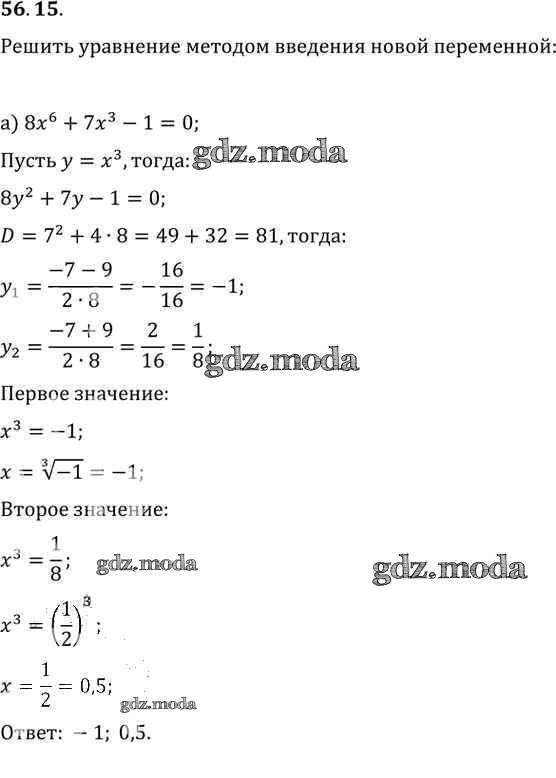ОТВЕТ на задание № 56. 15 Задачник по Алгебре 10-11 класс Мордкович Базовый уровень