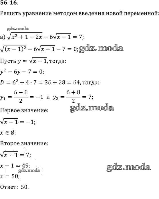 ОТВЕТ на задание № 56. 16 Задачник по Алгебре 10-11 класс Мордкович Базовый уровень