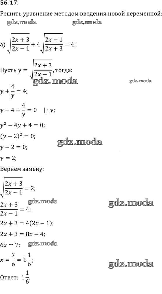 ОТВЕТ на задание № 56. 17 Задачник по Алгебре 10-11 класс Мордкович Базовый уровень