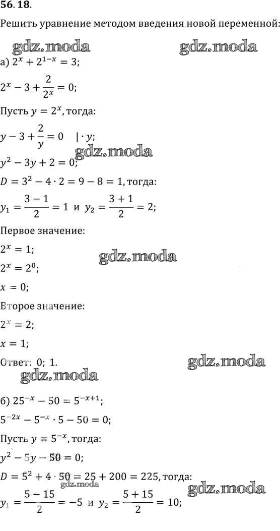 ОТВЕТ на задание № 56. 18 Задачник по Алгебре 10-11 класс Мордкович Базовый уровень