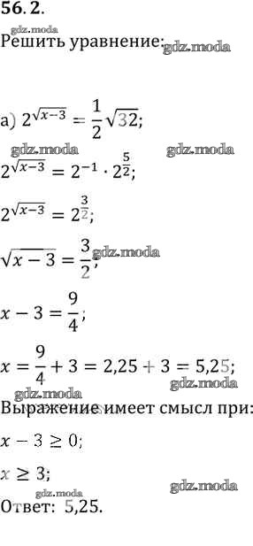 ОТВЕТ на задание № 56. 2 Задачник по Алгебре 10-11 класс Мордкович Базовый уровень