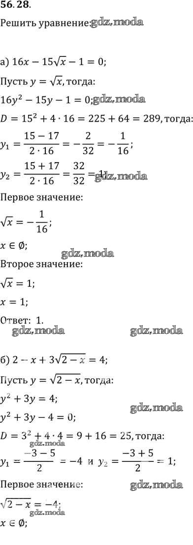 ОТВЕТ на задание № 56. 28 Задачник по Алгебре 10-11 класс Мордкович Базовый уровень
