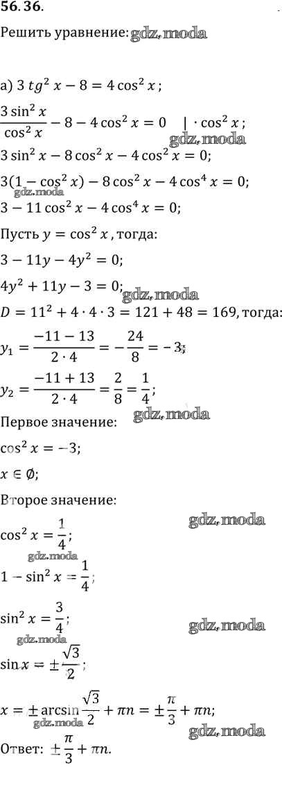 ОТВЕТ на задание № 56. 36 Задачник по Алгебре 10-11 класс Мордкович Базовый уровень