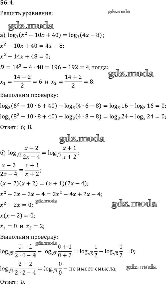 ОТВЕТ на задание № 56. 4 Задачник по Алгебре 10-11 класс Мордкович Базовый уровень