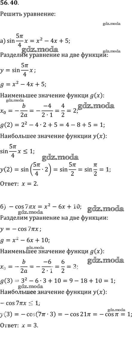 ГДЗ решение к заданию № 56. 40 Алгебра 10-11 класс Задачник Базовый уровень 2 часть Мордкович А.Г. Мнемозина 2015 Часть 2 Базовый уровень ФГОС бесплатно на гдз.мода!