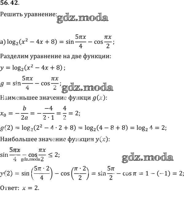 ГДЗ решение к заданию № 56. 42 Алгебра 10-11 класс Задачник Базовый уровень 2 часть Мордкович А.Г. Мнемозина 2015 Часть 2 Базовый уровень ФГОС бесплатно на гдз.мода!