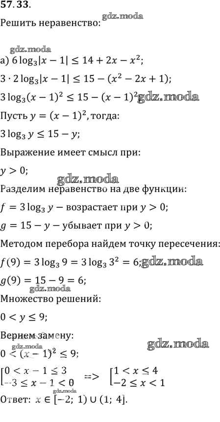 ОТВЕТ на задание № 57. 33 Задачник по Алгебре 10-11 класс Мордкович Базовый уровень