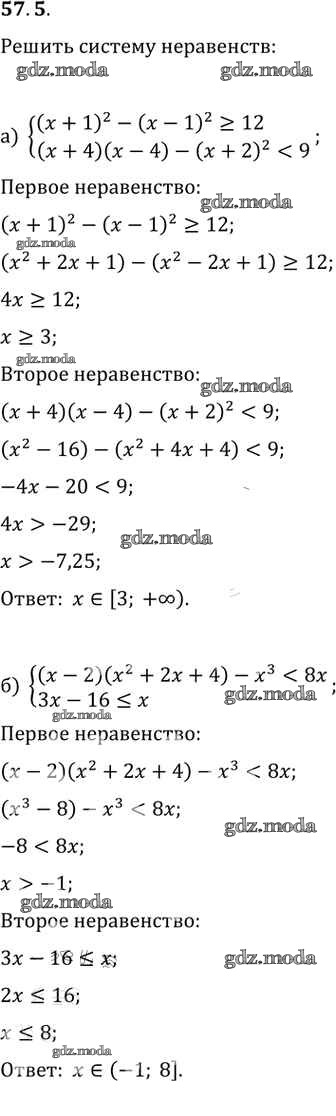 ОТВЕТ на задание № 57. 5 Задачник по Алгебре 10-11 класс Мордкович Базовый уровень