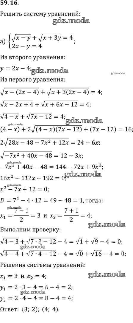 ОТВЕТ на задание № 59. 16 Задачник по Алгебре 10-11 класс Мордкович Базовый уровень