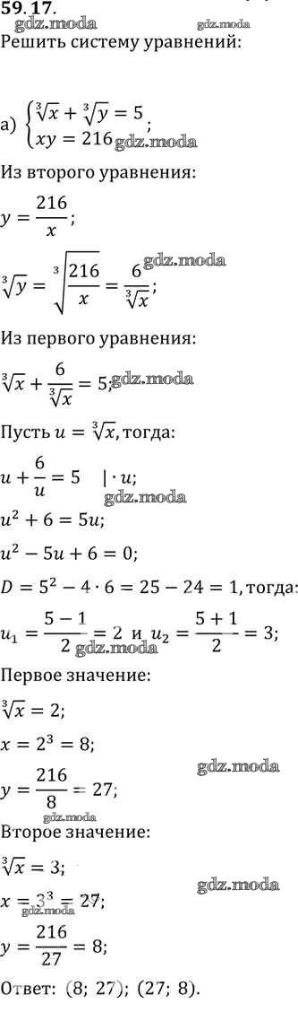 ОТВЕТ на задание № 59. 17 Задачник по Алгебре 10-11 класс Мордкович Базовый уровень