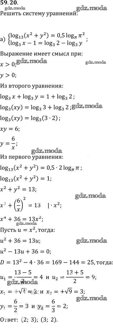 ГДЗ решение к заданию № 59. 20 Алгебра 10-11 класс Задачник Базовый уровень 2 часть Мордкович А.Г. Мнемозина 2015 Часть 2 Базовый уровень ФГОС бесплатно на гдз.мода!
