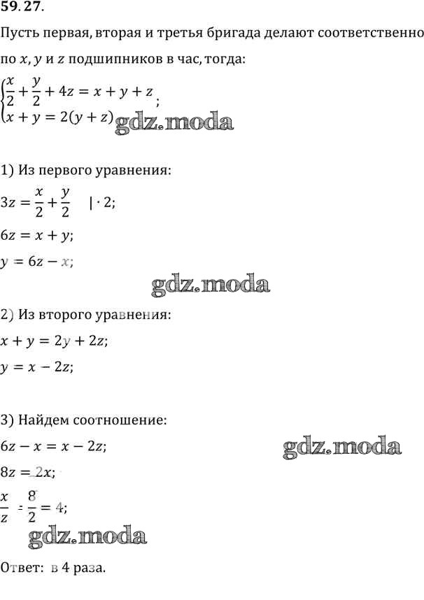 ОТВЕТ на задание № 59. 27 Задачник по Алгебре 10-11 класс Мордкович Базовый уровень