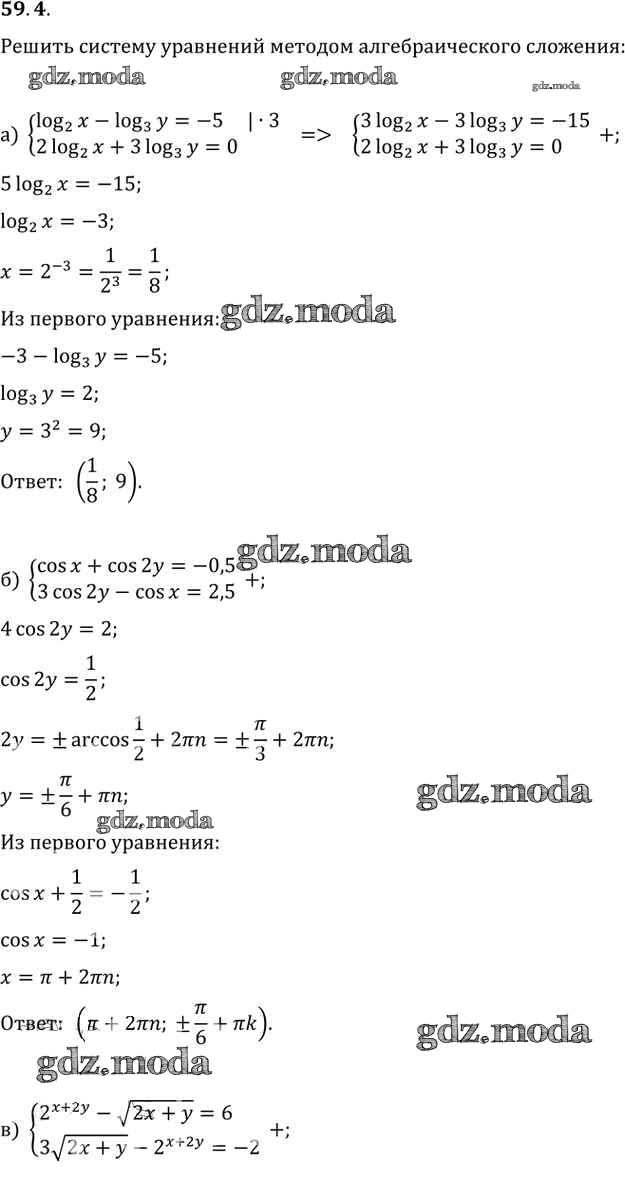 ГДЗ решение к заданию № 59. 4 Алгебра 10-11 класс Задачник Базовый уровень 2 часть Мордкович А.Г. Мнемозина 2015 Часть 2 Базовый уровень ФГОС бесплатно на гдз.мода!