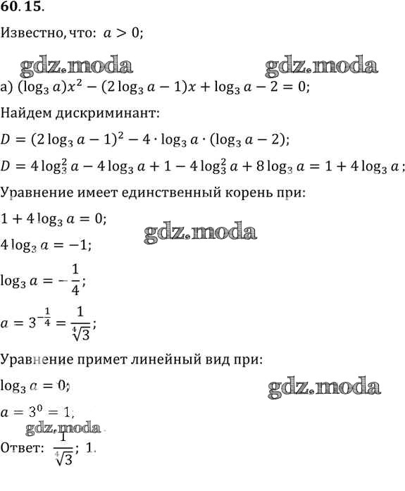 ОТВЕТ на задание № 60. 15 Задачник по Алгебре 10-11 класс Мордкович Базовый уровень