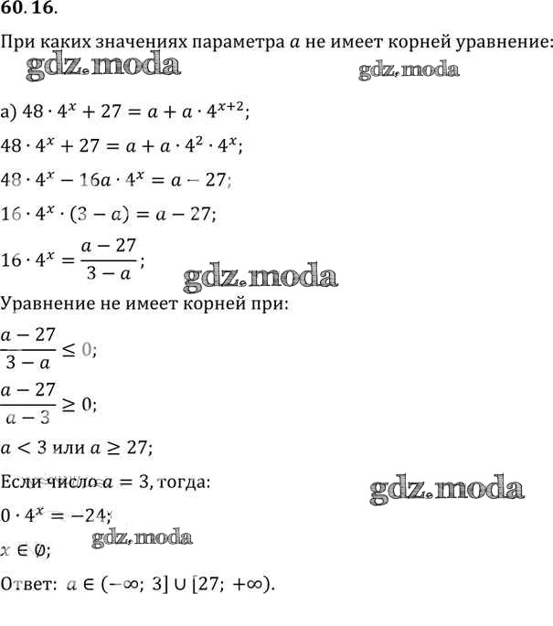 ОТВЕТ на задание № 60. 16 Задачник по Алгебре 10-11 класс Мордкович Базовый уровень
