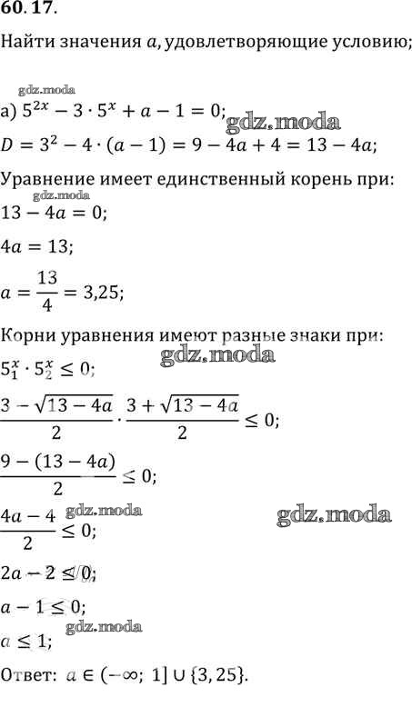 ОТВЕТ на задание № 60. 17 Задачник по Алгебре 10-11 класс Мордкович Базовый уровень