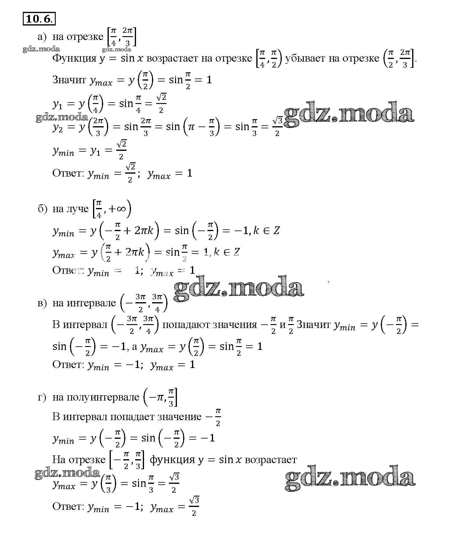 ОТВЕТ на задание № 10. 6 Задачник по Алгебре 10-11 класс Мордкович Базовый уровень