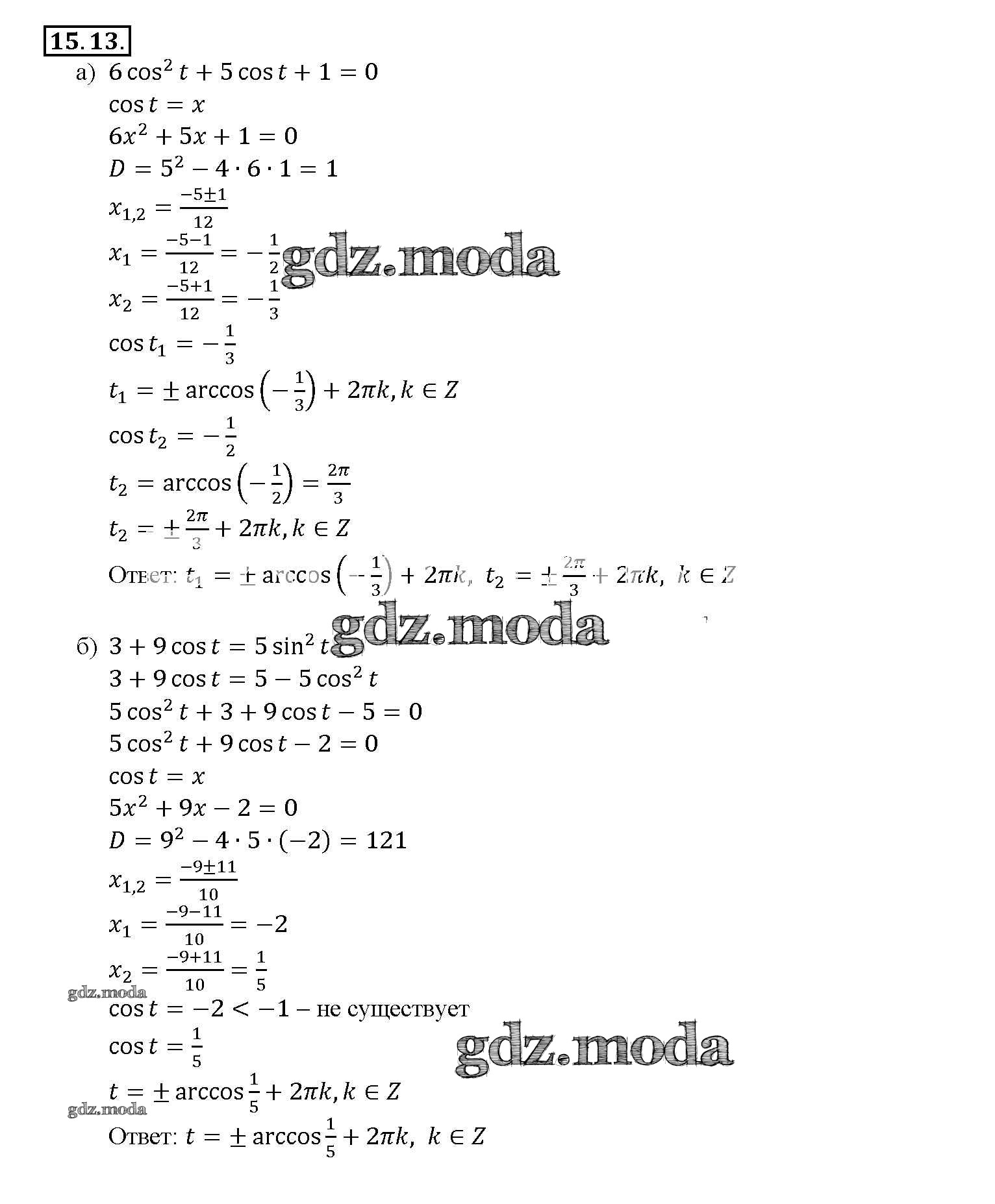 ОТВЕТ на задание № 15. 13 Задачник по Алгебре 10-11 класс Мордкович Базовый уровень