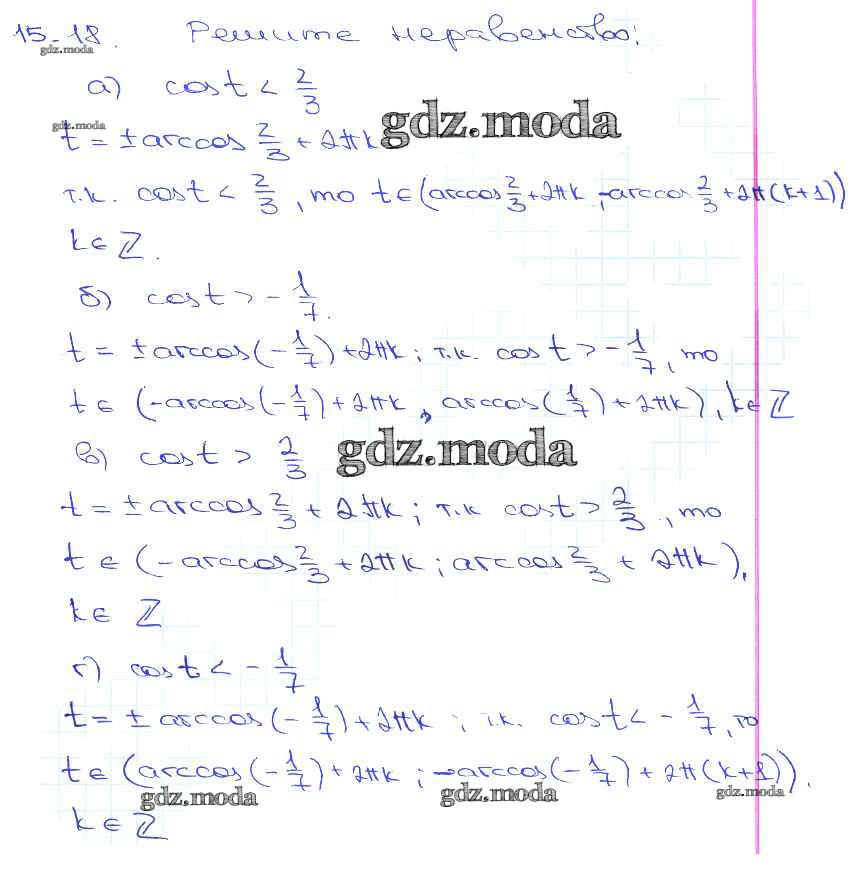 ОТВЕТ на задание № 15. 18 Задачник по Алгебре 10-11 класс Мордкович Базовый уровень