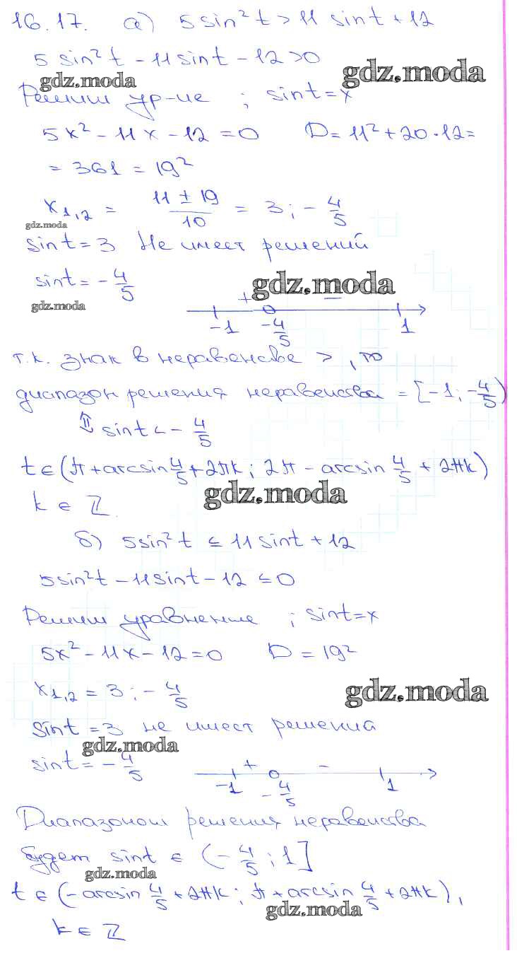 ОТВЕТ на задание № 16. 17 Задачник по Алгебре 10-11 класс Мордкович Базовый уровень