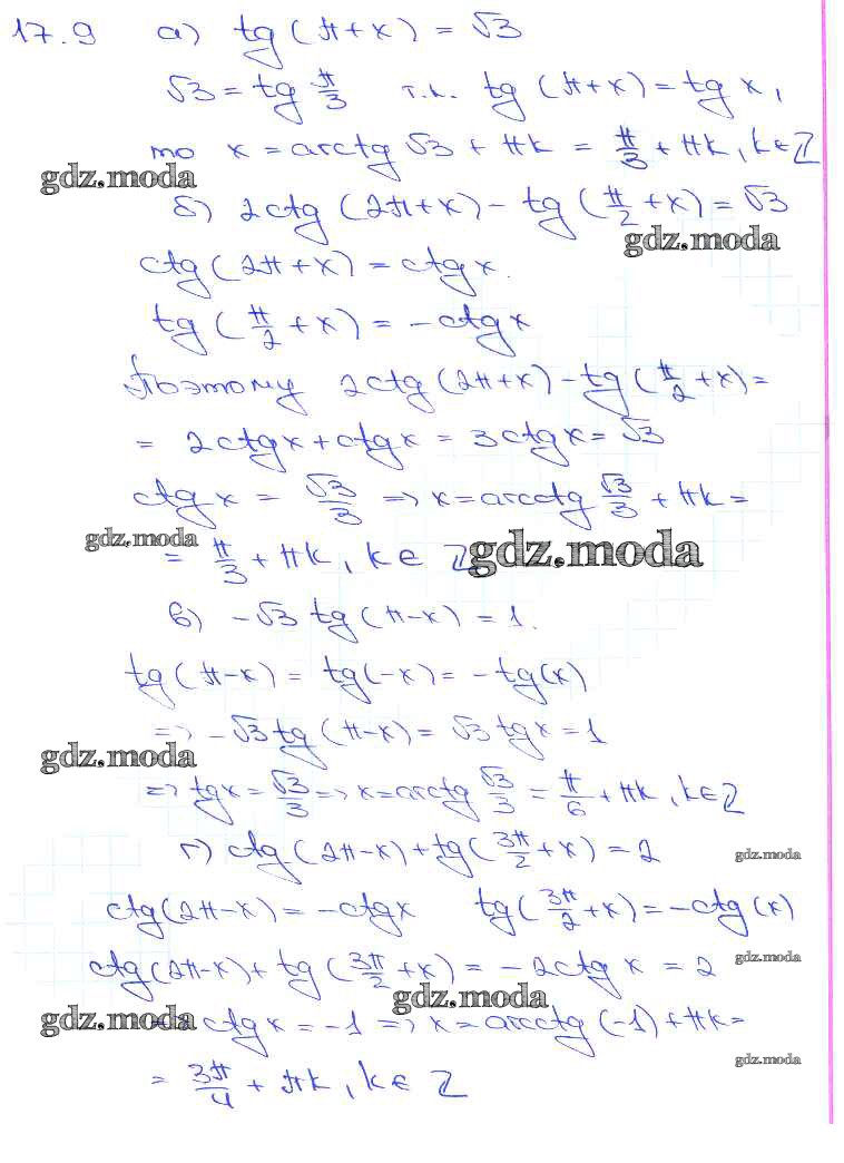 ОТВЕТ на задание № 17. 9 Задачник по Алгебре 10-11 класс Мордкович Базовый уровень