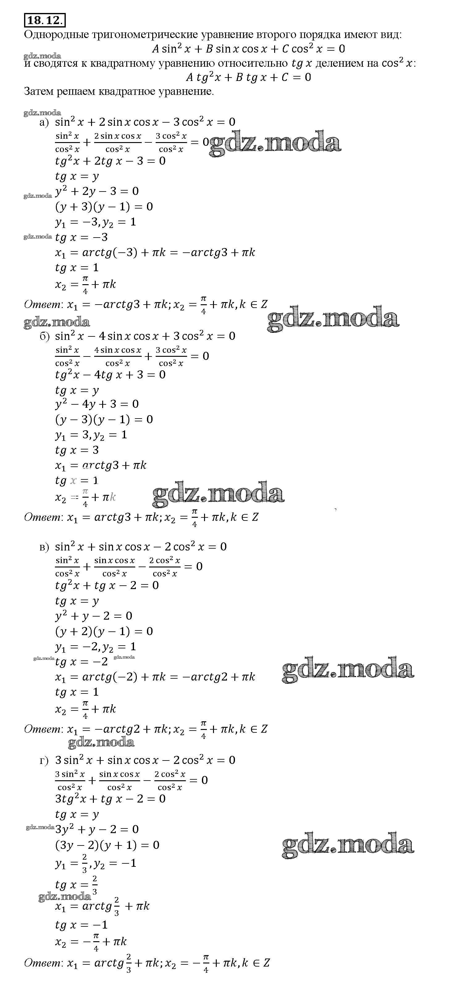ОТВЕТ на задание № 18. 12 Задачник по Алгебре 10-11 класс Мордкович Базовый уровень