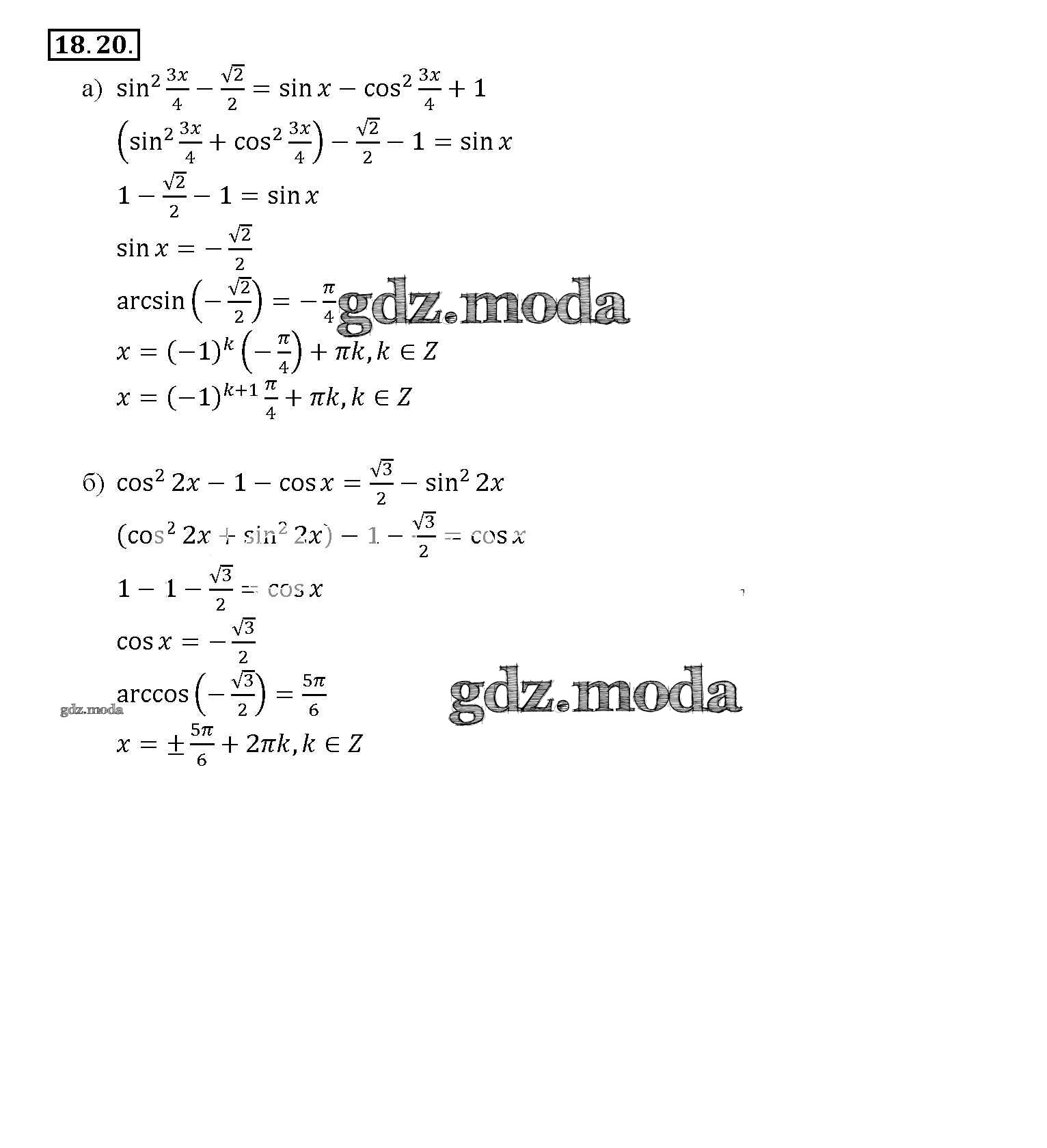 ОТВЕТ на задание № 18. 20 Задачник по Алгебре 10-11 класс Мордкович Базовый уровень