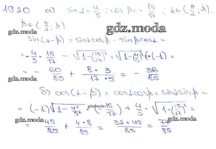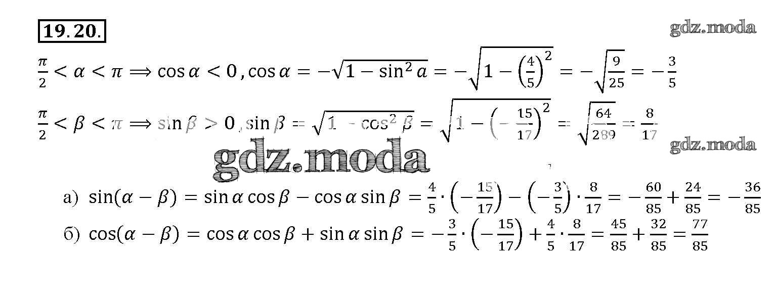 ОТВЕТ на задание № 19. 20 Задачник по Алгебре 10-11 класс Мордкович Базовый уровень
