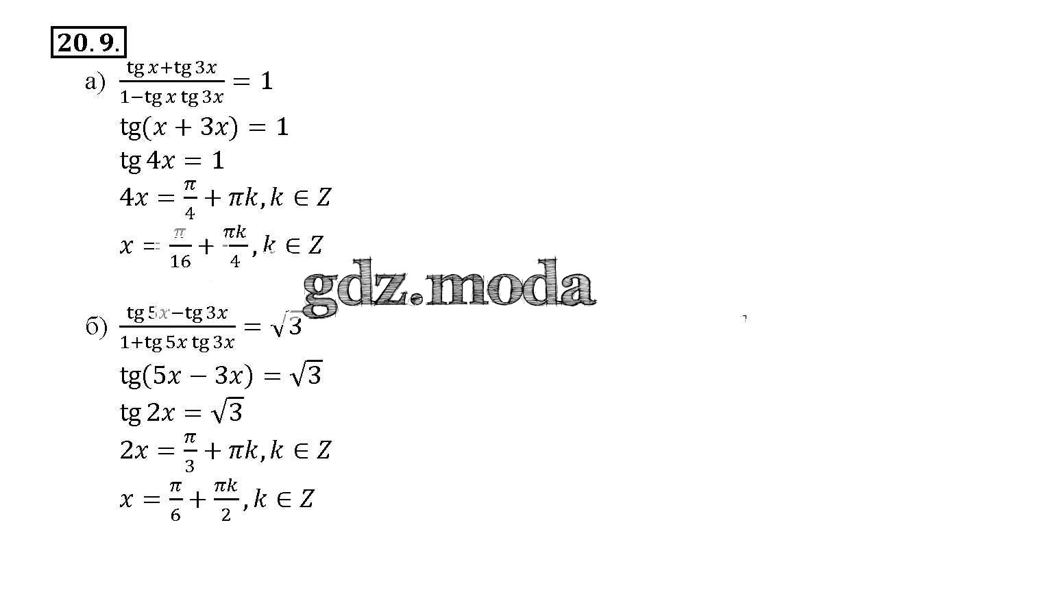 ОТВЕТ на задание № 20. 9 Задачник по Алгебре 10-11 класс Мордкович Базовый уровень