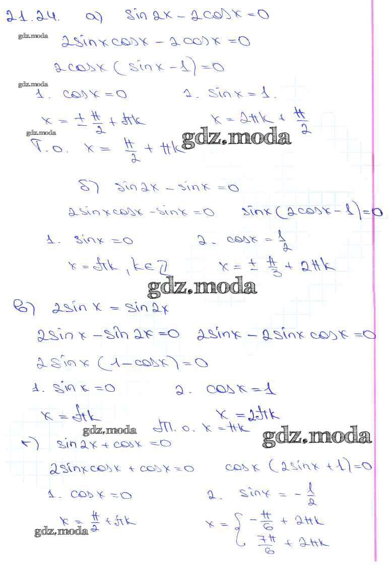 ОТВЕТ на задание № 21. 24 Задачник по Алгебре 10-11 класс Мордкович Базовый уровень