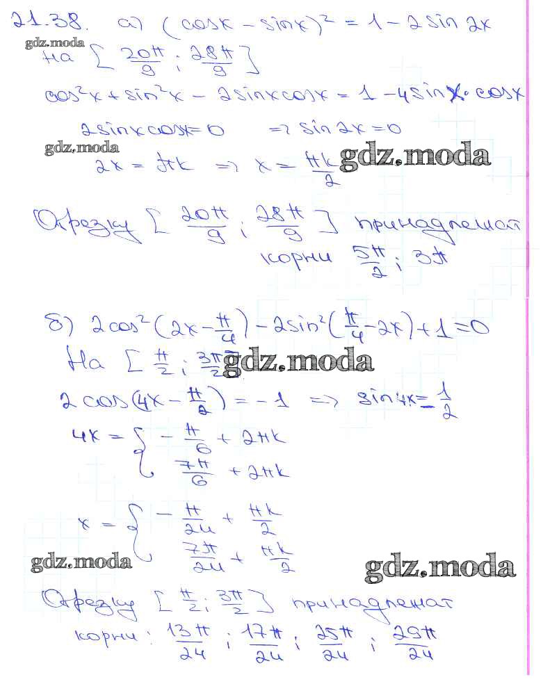 ОТВЕТ на задание № 21. 38 Задачник по Алгебре 10-11 класс Мордкович Базовый уровень
