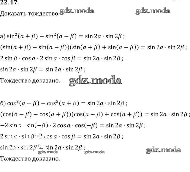 ОТВЕТ на задание № 22. 17 Задачник по Алгебре 10-11 класс Мордкович Базовый уровень